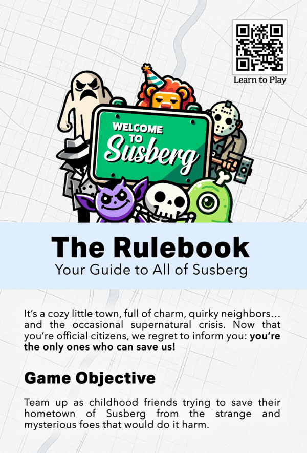 Explore every card, foe and quirk that makes Welcome to Susberg unforgettable. Browse the full card library and read the official rulebook to see exactly what’s in the box.